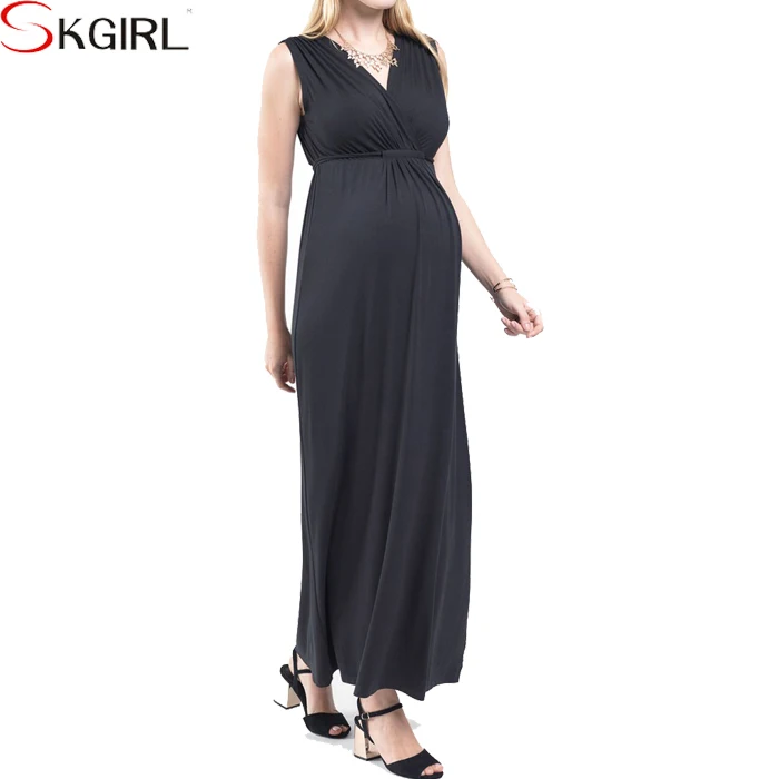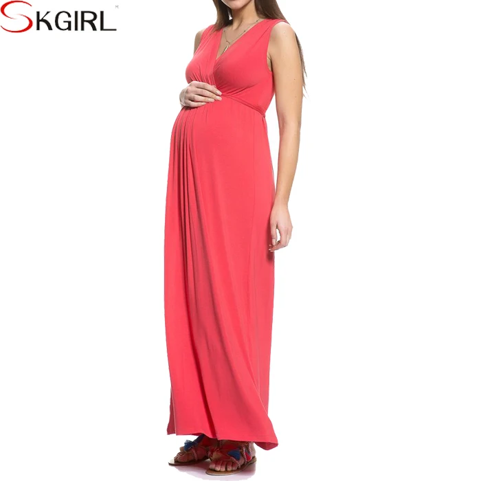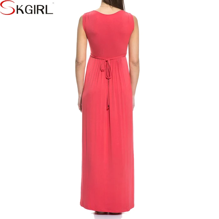 Elegant Sleeveless Draped Tie Waist Maternity and Nursing Summer Maxi Dress for Pregnant Women Clothing